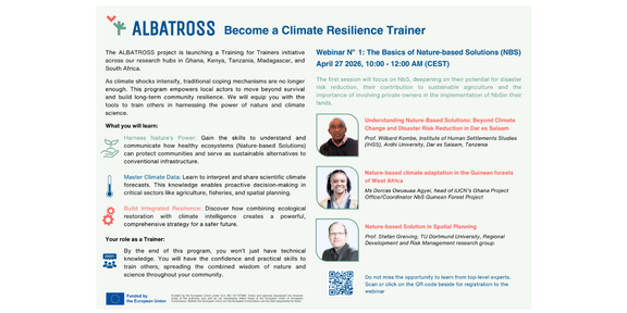 The ALBATROSS project, through its Capacity Building and Training Strategy, has developed a comprehensive Training for Trainers (TfT) program across seven Climate Resilient Development (CRD) hubs in Ghana, Kenya, Tanzania, Madagascar and South Africa. This initiative bridges critical knowledge gaps by equipping trainers with practical skills to guide communities in applying resilience-building approaches.